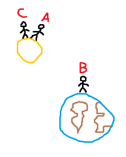[para as pessoas A e C, o B está em movimento, mas para o B, o A e o C
